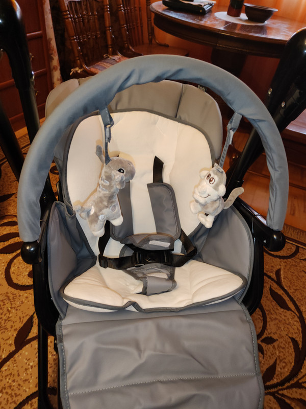 Так, о чем я, стул классный, многофункциональный и маневренный. Первое время после рождения младшего сыночка, стульчик служил нам как шезлонг. Сынок лежал и глазел, пока мама варила кушать, главное, чтобы мама была в поле зрения, иначе ор на всю квартиру. Но главное, от чего тащился мой сын – это игрушки, которые висели на дуге, эти милые зверята были первой любовью малыша.